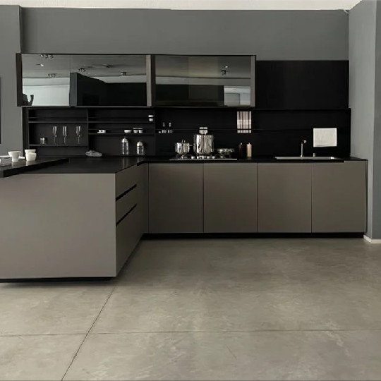Product name : Handleless Light Gray Glossy Kitchen Furniture Kitchen Cabinet Modern PVC Kitchen Cabinets